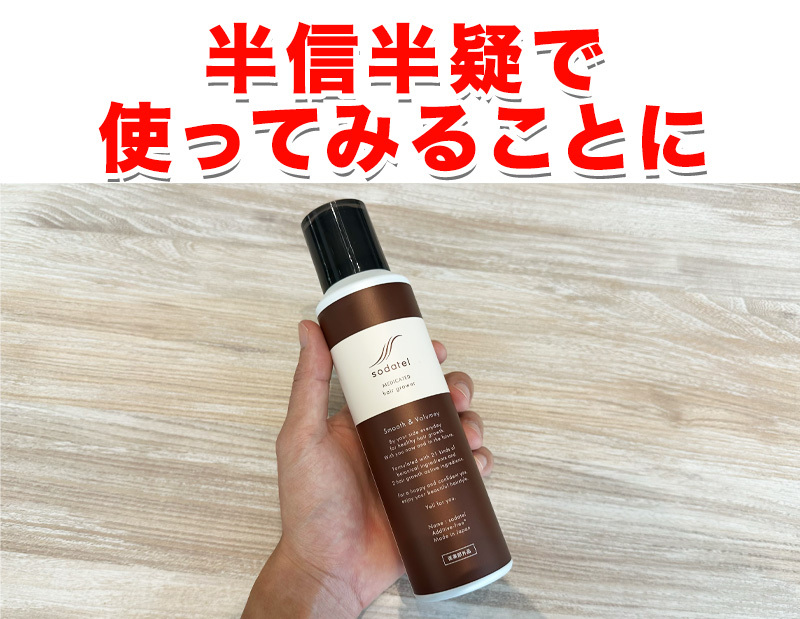 僕はソダテルの薬用炭酸育毛剤を使っています。これ、今まで使ったことのある育毛剤とは使用感が違うんです!生え際、頭頂部、分け目など気になるところにワンプッシュするだけ。これからも使い続けます!